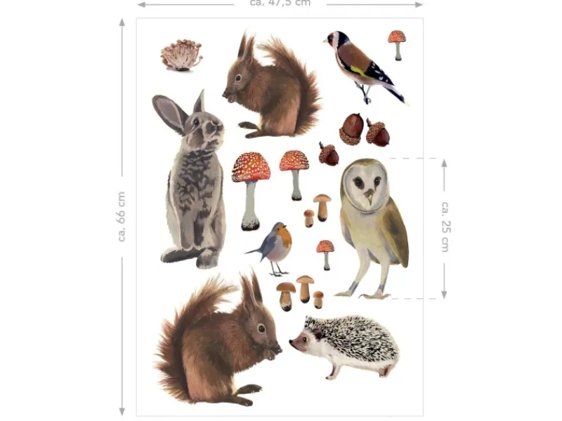 Die Maße dieses Wandtattoos sind 47,5 cm x 66 cm (Breite x Länge). Dieses Wandtattoo enthält 17 Aufkleber.