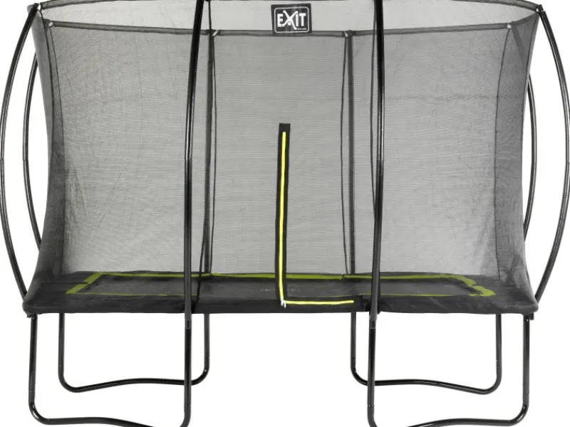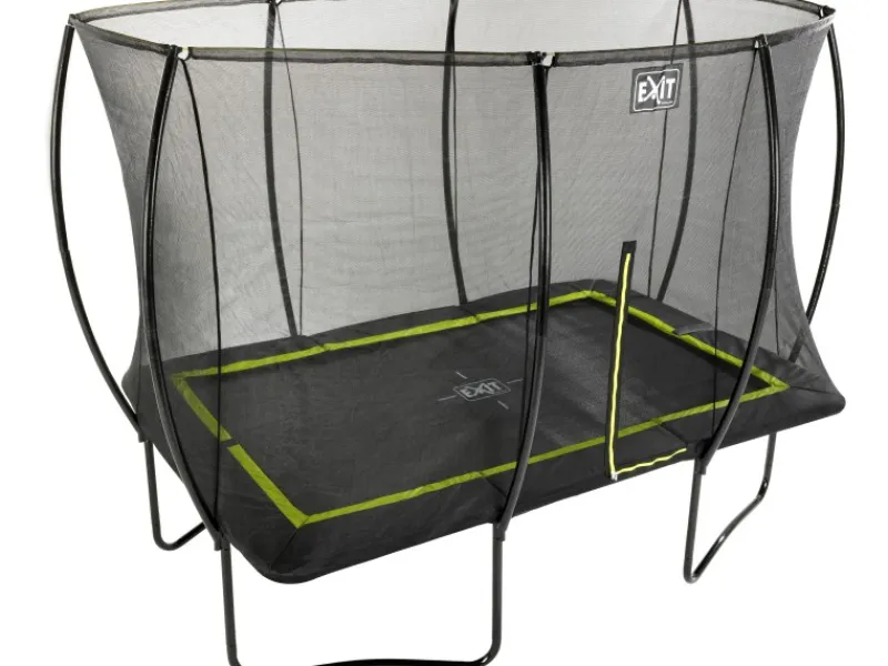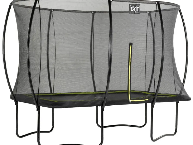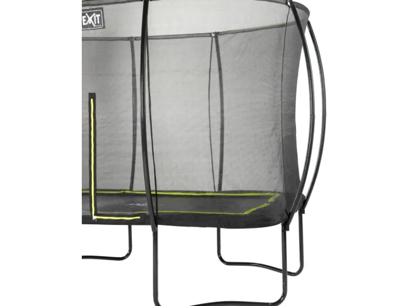 Das EXIT Silhouette Trampolin auf Füßen ist ein rechteckiges Trampolin. Das Sicherheitsnetz, das standartmäßig bei Trampolinen auf Füßen mitgeliefert wird, ist mit gebogenen Ständern ausgestattet, sodass das Netz straff gespannt steht. Der hochwertige Schutzrand deckt die galvanisierten Federn völlig ab und ist mit einem speziell entwickelten Fußschutzsystem ausgerüstet, damit dein Fuß nie zwischen die Federn kommen kann. Die soliden Federn stehen für eine gute Sprungkraft Garant. Der Rahmen des Silhouette Trampolins ist galvanisiert und pulverbeschichtet, damit Rost keine Chance hat. Auf den rechteckigen EXIT Silhouette Trampolinen erlebst du endlos viel Springspaß!