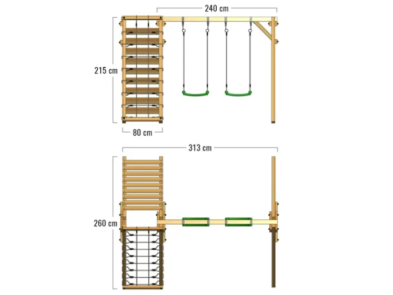 Schaukelbalken 9×9 cm und Standpfosten 7×7 cm