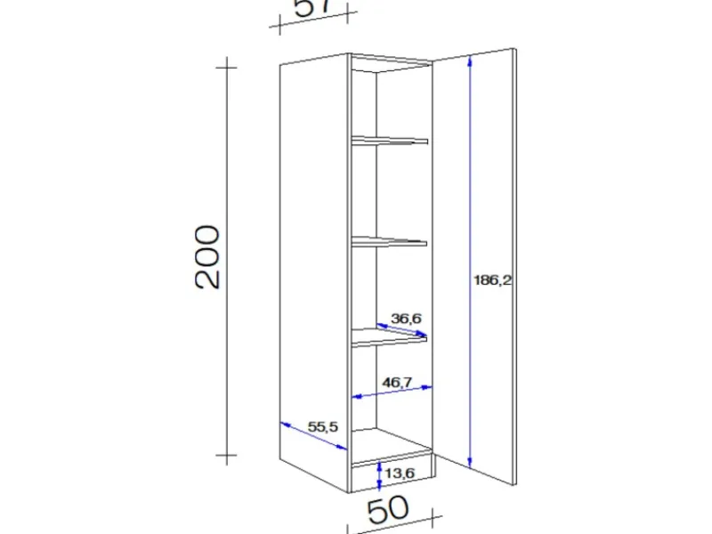 Maße: (B x H x T) 50 x 200 x 57 cm