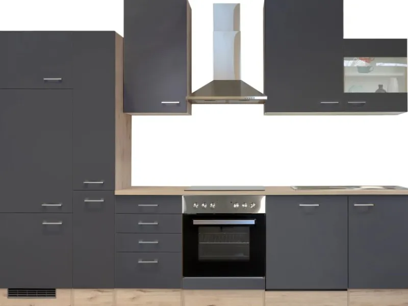 Die 310 cm breite Küchenzeile (B x H x T) besteht aus: