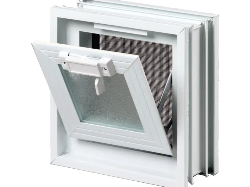 Im Lieferumfang ist ein Lüftungsfenster für Glassteine im Format 24 cm x 24 cm x 8 cm enthalten.