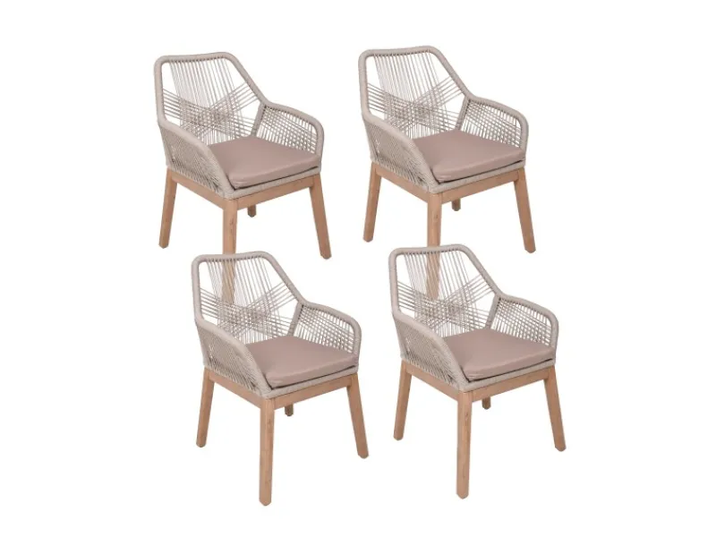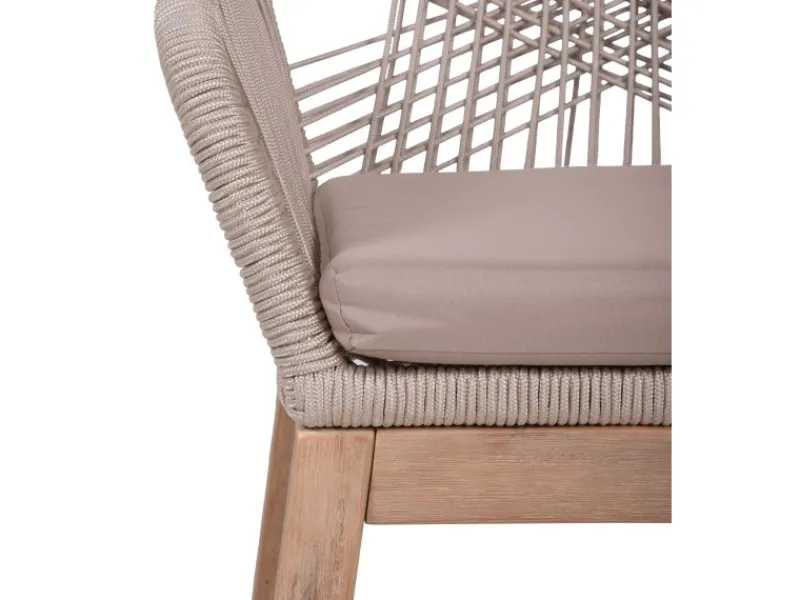 Die Sitzfläche ist mit einer robusten Seilbespannung versehen, die nicht nur komfortabel ist, sondern auch eine langlebige Konstruktion bietet. Die passende Polyester-Auflage in Braun sorgt für zusätzlichen Sitzkomfort und macht den Stuhl Pomona zu einer ansprechenden Ergänzung für Innen- und Außenbereiche.