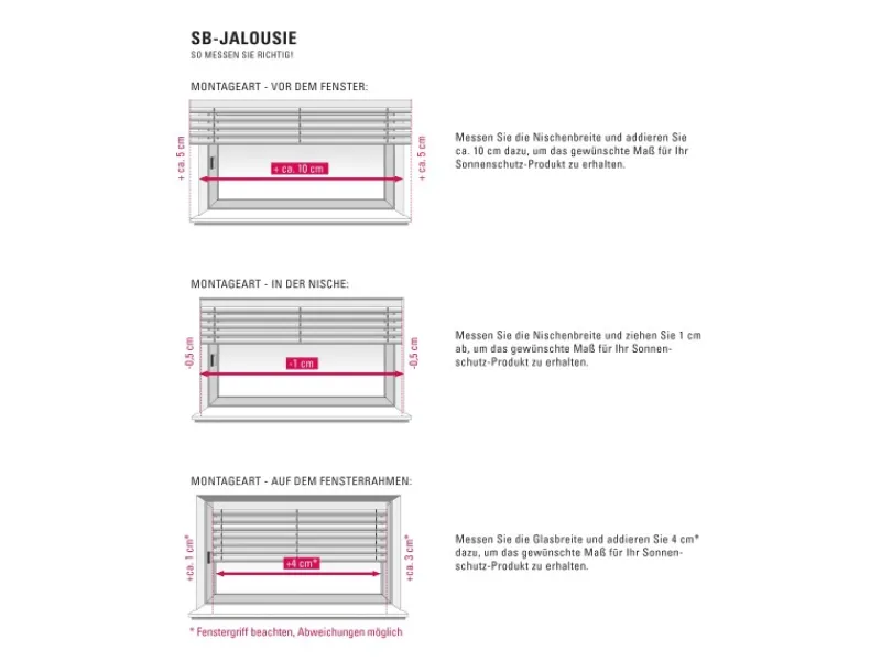Das im Lieferumfang enthaltene Befestigungsmaterial ermöglicht Ihnen sowohl die Decken- als auch die Wandmontage. Alternativ können Sie die Jalousie mit dem passenden Klemmträger auch ohne Bohren und Schrauben montieren.