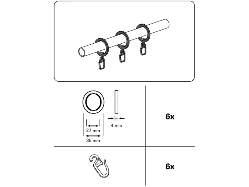 Gardinia Gardinenringe Kos für Ø 27 mm Schwarz 6-er Pack
