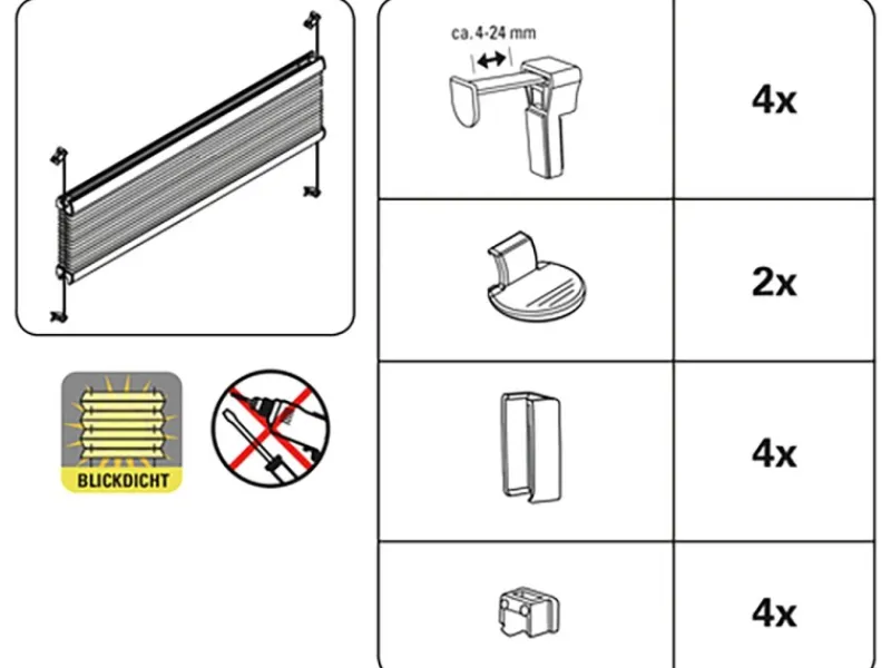 Sollte die Breite des Plissees einmal nicht genau passen, ist das auch kein Problem. Mit einer Metallsäge und einem Cuttermesser kann das Plissee aus Polyester ganz einfach um bis zu ca. 7 cm auf jeder Seite gekürzt werden.