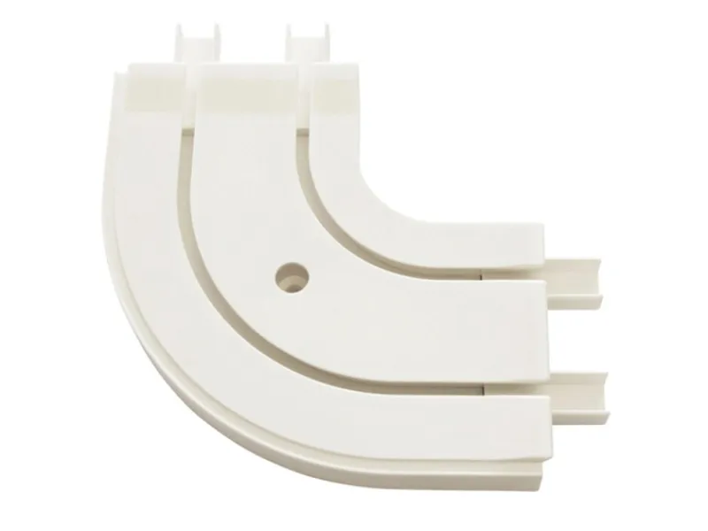 Mit dem praktischen Gardinia Rundbogen aus weißem Kunststoff passt sich die Vorhangschiene jeder Raumform an. Der Bogen hat einen 90° Winkel und eignet sich für die Verlängerung der 2-läufigen Gardinia Vorhangschiene GE2.