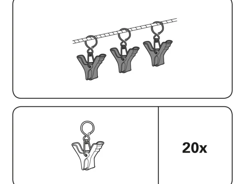 Die praktische Gardinia Seilklammer eignet sich für die Befestigung von Vorhangstoffen ohne großen Aufwand. Die Metall-Klammer ist die perfekt abgestimmte Ergänzung für Gardinia Seilspanngarnituren.