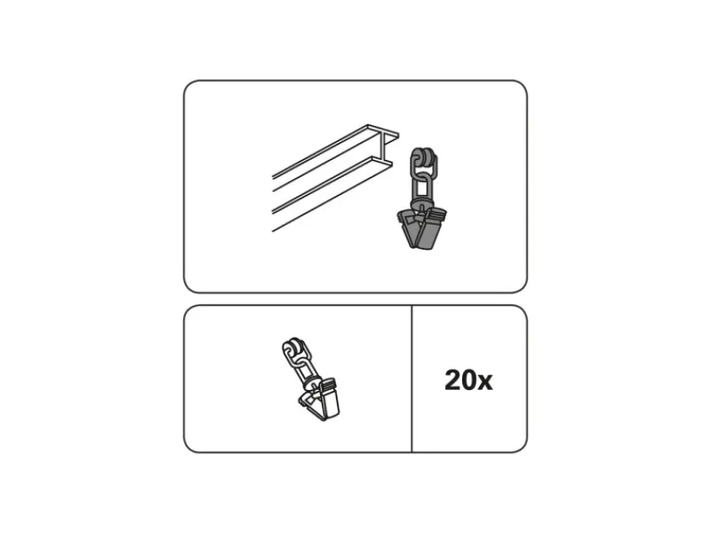 Gardinia T-Rollringe mit Klammer Weiß 20-er Pack