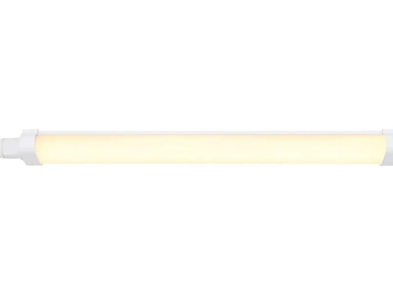 Diese schlichte Unterbauleuchte überzeugt durch schönes Design und Funktion. Die 55 cm lange und 5,3 cm breite Leiste scheint ein 3000 Kelvin warmweißes Licht und sorgt für die perfekte Beleuchtung Ihrer Regale oder Tische. Der Schutzgrad IP65 sorgt für einen Schutz gegen Wasser. Das Design aus weißem und opalen Kunststoff erstrahlt Ihre Räumlichkeiten in einer wunderschönen Optik. Setzen Sie Akzente.