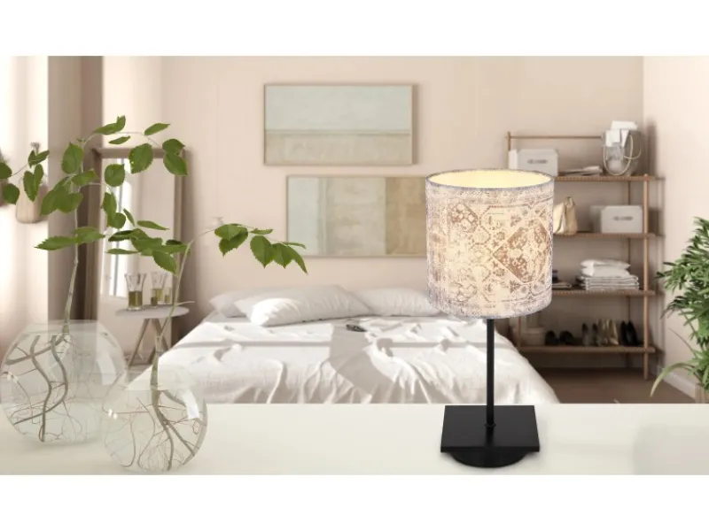 Diese verlockende Tischleuchte der Serie Gabriele verfügt über einen Durchmesser von 15 cm und eine Höhe von 35 cm. Der musterhafte Textilschirm verdeckt eine E14 Fassung, welche mit einem beliebigen Leuchtmittel bis zu einer Leistung von 40 Watt ausgestattet werden kann. Dieses Modell wird mittel ON/OFF Schalter bedient und lässt sich perfekt mit weiteren Modellen dieser Serie kombinieren.
