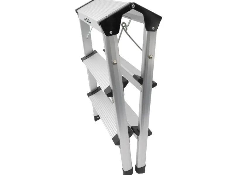 Praktisch zusammenklappbare Trittleiter für alle Fälle. Egal ob auf dem Bau oder im Haushalt – dieser leichte, aus Aluminium gefertigte Tritt ist der perfekte Helfer beim Montieren, Renovieren oder Dekorieren.