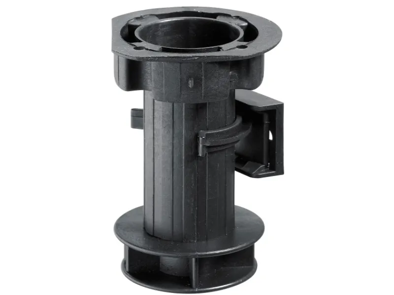 Sockel-Verstellfuß aus Kunststoff für Küchenunterschränke. Maximale Belastung von 200 kg und höhenverstellbar von 100 – 120 mm. Inkl. Klips zur Befestigung von Frontblenden.