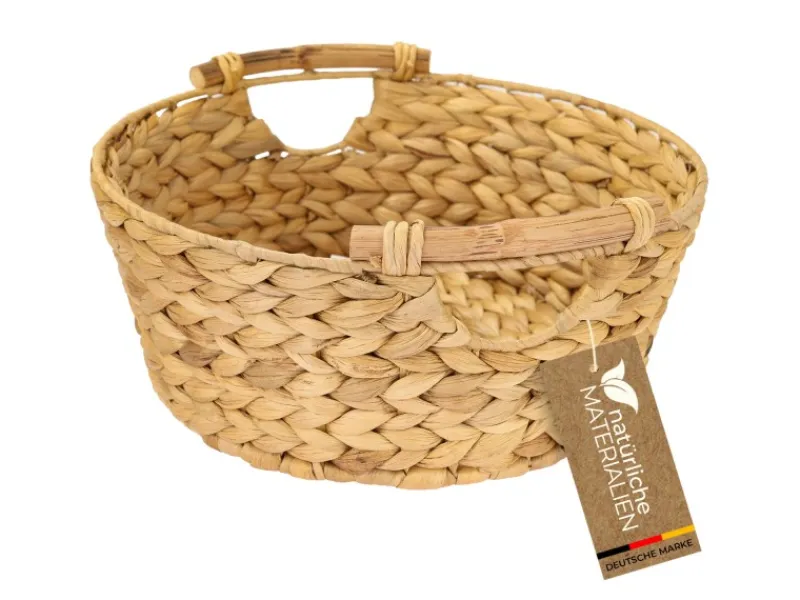 HANDGEMACHT – Runder Flechtkorb aus nachwachsender Wasserhyazinthe mit Holzgriffen