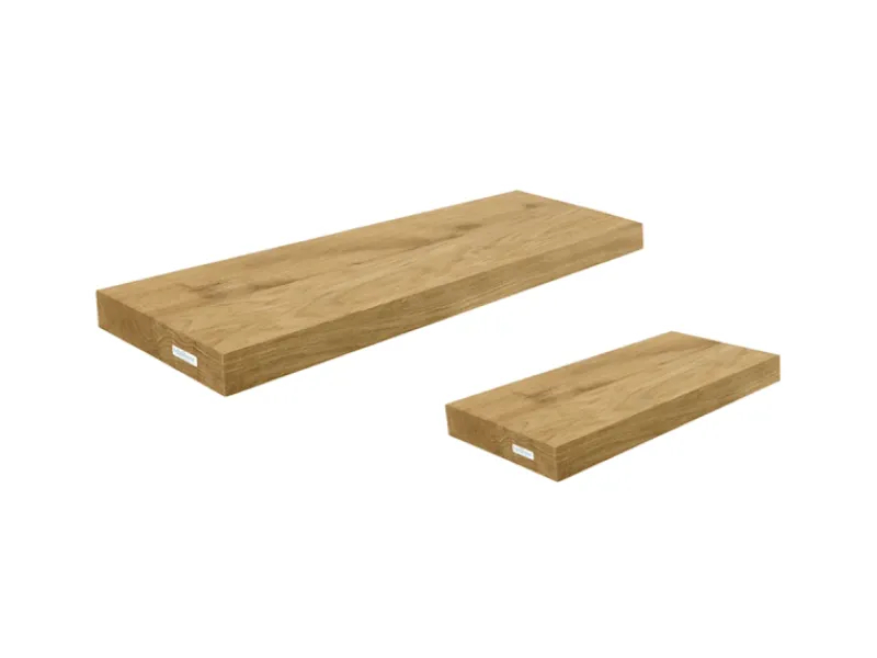 Unsere Wandregale bestehen aus hochwertig geöltem Eichenholz. Sie sind verfügbar in hellgrau- und naturgeölter Ausführung.