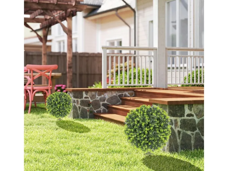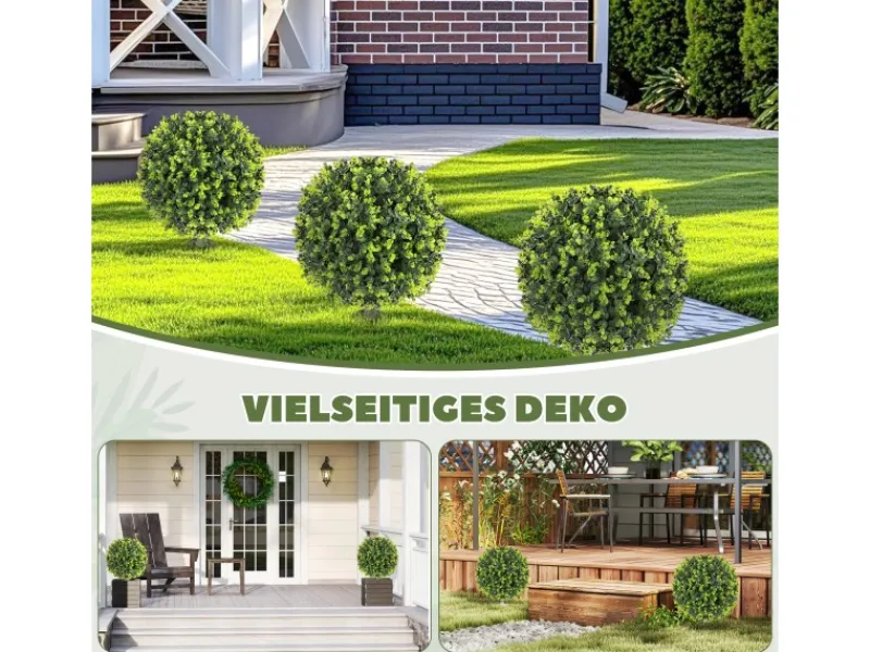 ● Realistische Buchsbaumkugel mit Eukalyptusblättern für natürliche Optik