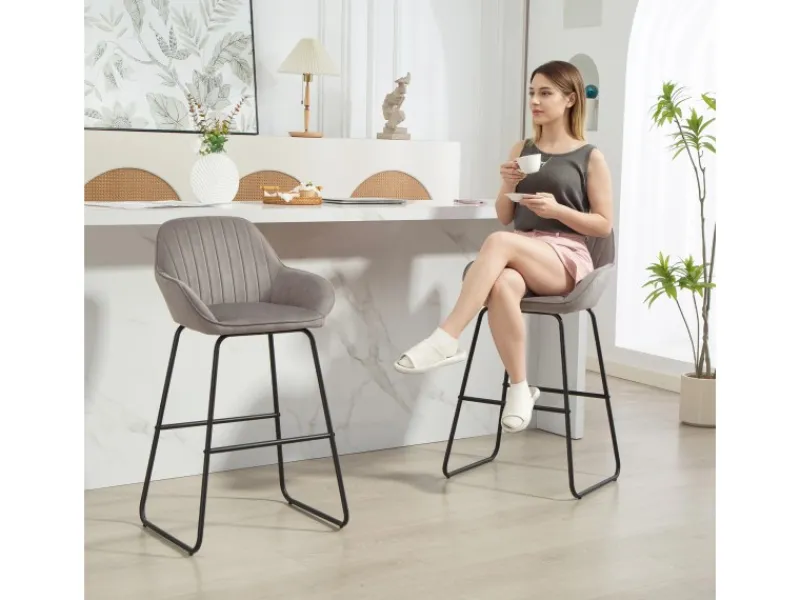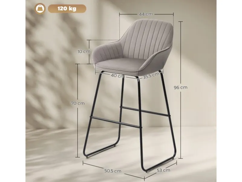 ● Der samtartige Bezug des Tresenstuhls ist atmungsaktiv und hautfreundlich und mit stilvoller Kanalsteppung ausgestattet