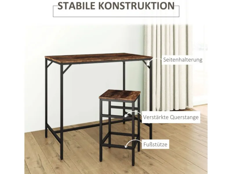 Schreibe die erste Bewertung für „HOMCOM Bartisch mit Barhocker 5-Teilig Stahl Rustikal-Braun 100 x 60 x 88 cm“ Antworten abbrechen