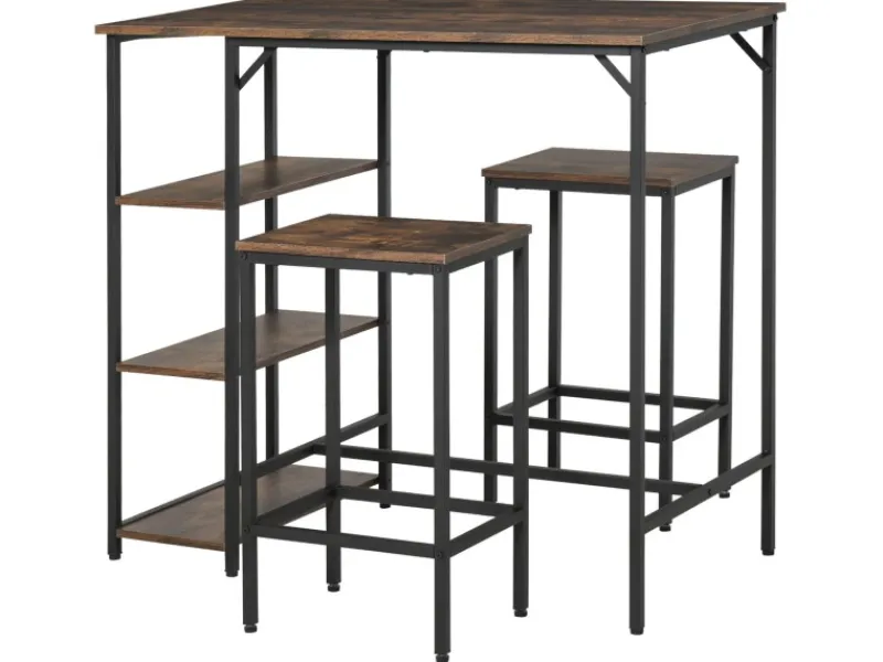 Mit diesem Set von HOMCOM können Sie ganz einfach die Sitzplätze der Gäste und die Platzierung der Speisen arrangieren. Die zweifarbige Konstruktion aus rustikalem Holz und dunklem Metall setzt einen klaren Stil in einem modernen Umfeld. Armlose Hocker erlauben freie Bewegung für ein uneingeschränktes Sitzerlebnis und können platzsparend unter dem Schreibtisch platziert werden.