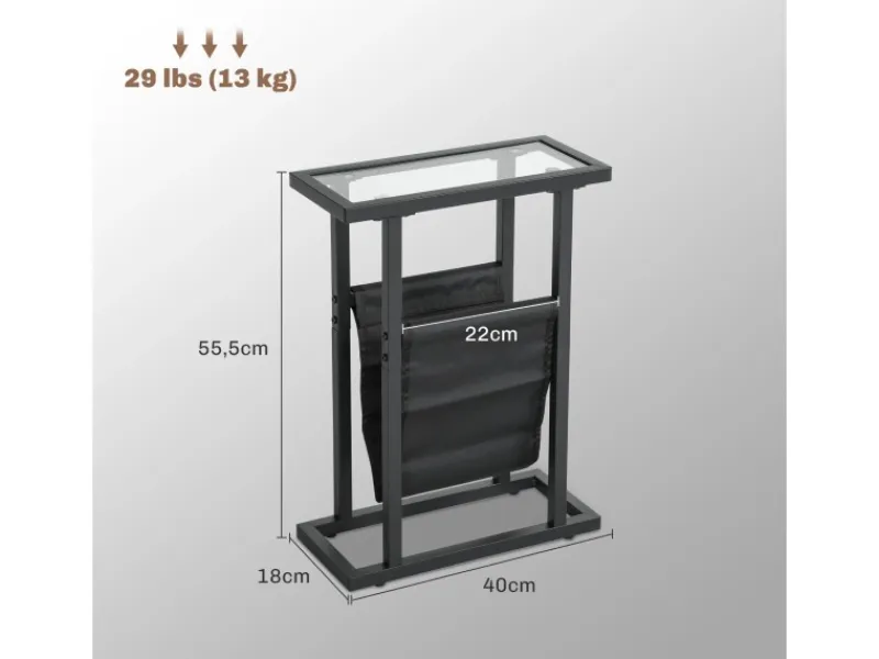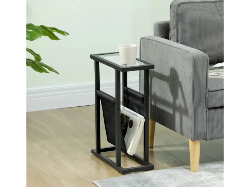 ● Der schmale Beistelltisch passt perfekt in enge Räume