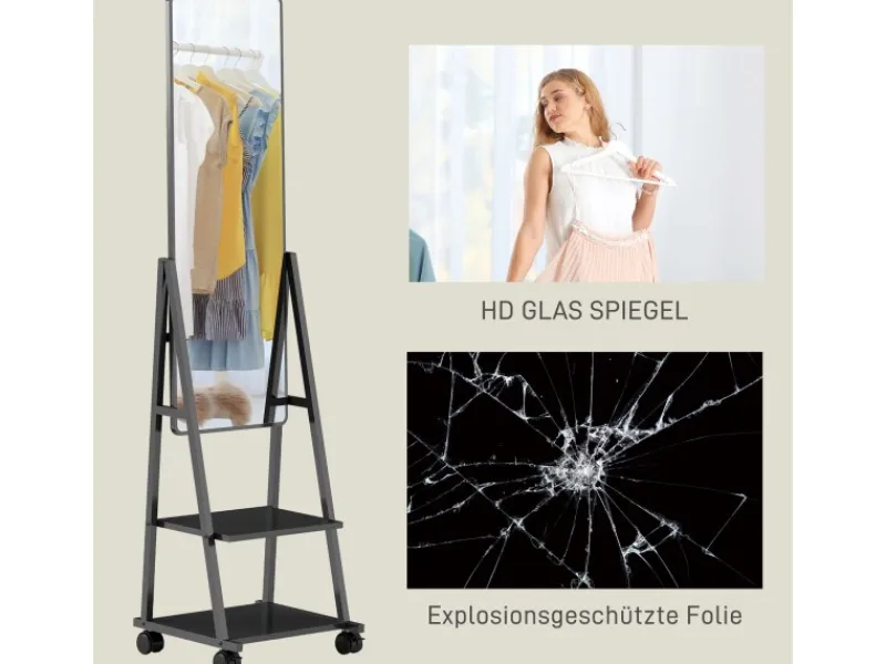 ● Die Bodenlänge des Stehspiegels zeigt das gesamte Outfit