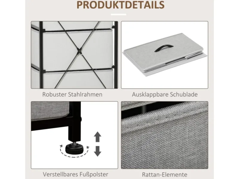 ● Max. empfohlene Belastbarkeit: 3 kg (Schublade), 10 kg (Oberseite)