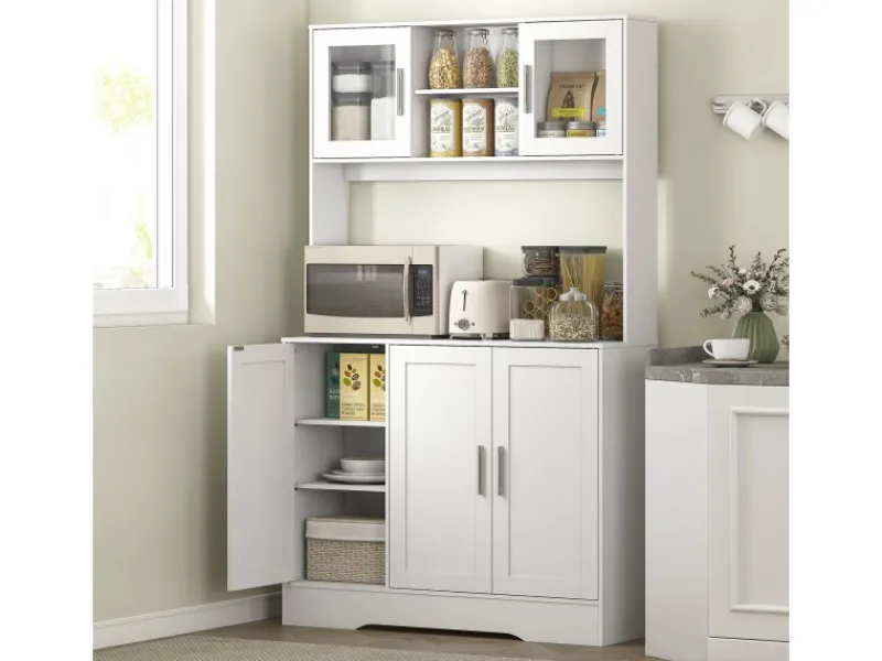 ● Vier Schränke, zwei offene Regale und eine geräumige Arbeitsplatte des Küchenbuffets erfüllen unterschiedliche Aufbewahrungsanforderungen