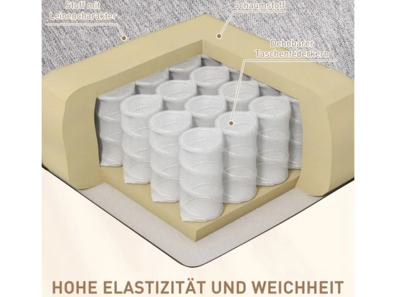 Tauchen Sie ein in den Komfort des HOMCOM Relaxsessels mit einer bis zu 145° kippbaren Rückenlehne für ultimative Entspannung. Mit nur einem Knopfdruck und einem innovativen Fersenstoß lässt sich die Fußstütze leicht einfahren – alles für Ihre Bequemlichkeit. Erleben Sie das Gefühl von Luxus durch die Taschenfederkernpolsterung und das üppige Design, eingehüllt in einen atmungsaktiven Stoff mit Leinenoptik. Verwandeln Sie Ihr Entspannen in eine wohltuende Auszeit mit diesem eleganten Liegesessel.