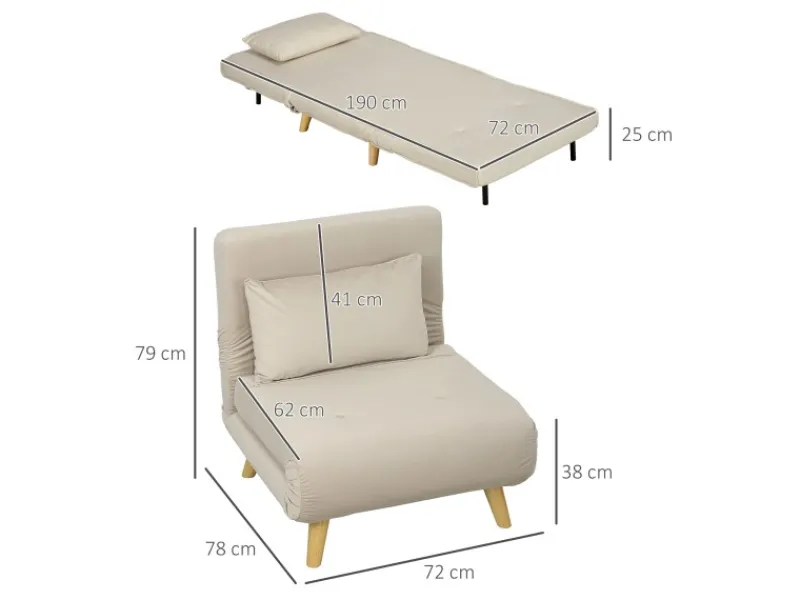 Produktdaten zum Bettsofa Sesselmaße 72L x 78B x 79H cm