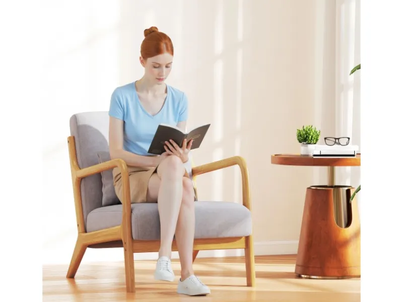 ● Relaxsessel mit Rahmen aus Gummiholz und Kissen in grauer Samtoptik, ideal, um Ihrem Interieur eine gemütliche Atmosphäre zu verleihen