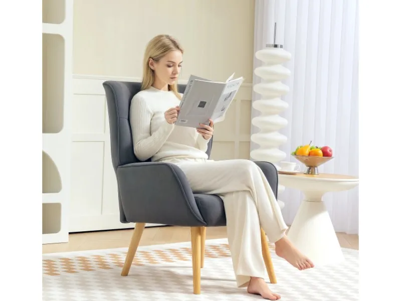 ● Robuster Metallrahmen und Kautschukbaumholzbeine des Polstersessels für Langlebigkeit