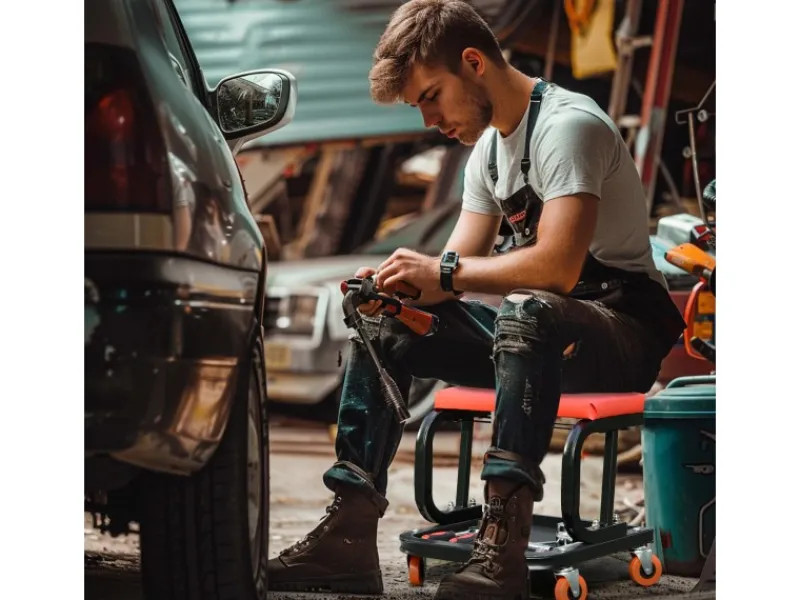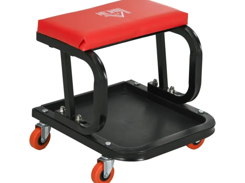 Entdecken Sie die Vorteile des HOMCOM Werkstattstuhls, der Ihre Zeit in der Garage angenehmer und effizienter macht. Mit einer praktischen Werkzeugablage und leichtgängigen Rollen sind Ihre Werkzeuge stets griffbereit. Der gepolsterte Sitz mit wasser- und ölbeständiger Kunstleder-Oberfläche bietet Komfort bei langen Projekten. Ideal für jede Garage oder Werkstatt.