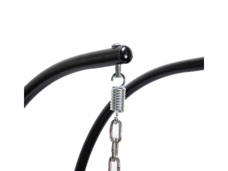 Der freischwingende Hängesitz besteht aus einem Geflecht und das Gestell aus einem Guss, was ihn noch stabiler, langlebiger, robuster und stabiler macht als vergleichbare Hängesessel. Das Hängesesselgestell aus Metall ist besonders standsicher und extra stabil. Zwei gefederte Aufhängungen bieten hohen Komfort und unterstützen die natürliche Schwingbewegung.