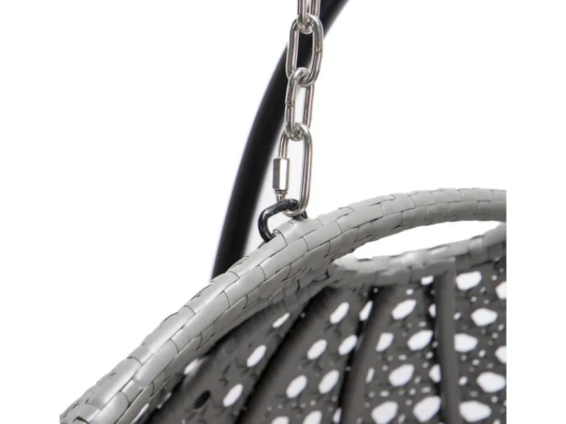 Mit seiner eleganten Form und einem modernen Design in Grau passt der Hängestuhl nahezu in jedes Ambiente. Das Poly-Flachrattan ist wetterbeständig und strapazierfähig, sowie UV-resistent. Die Sitz- und Seitenkissen in Grau runden das Gesamtbild ab und sorgen für extra hohen Komfort. Die Bezüge sind aus 100 % wasserfestem Polyester gefertigt.