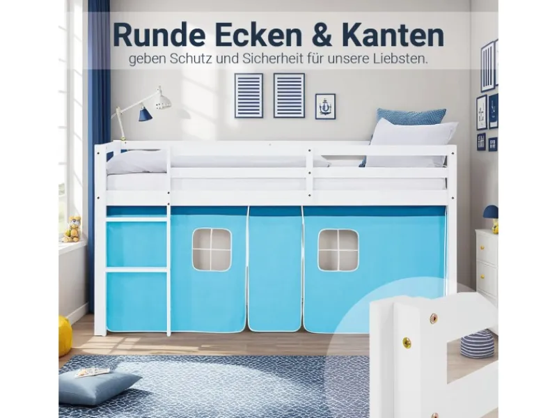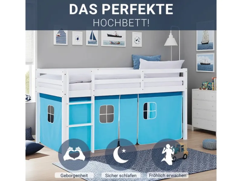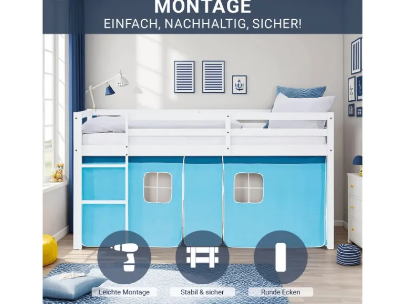 Kinderhochbett mit Vorhang (blau), Aufbauanleitung, Montagezubehör
