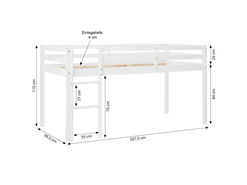 Hochbett 90×200 cm – Platzsparendes Kinderbett in Weiß, ideal für kleine Zimmer.