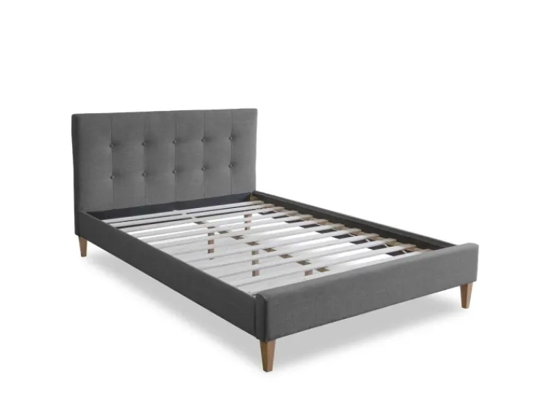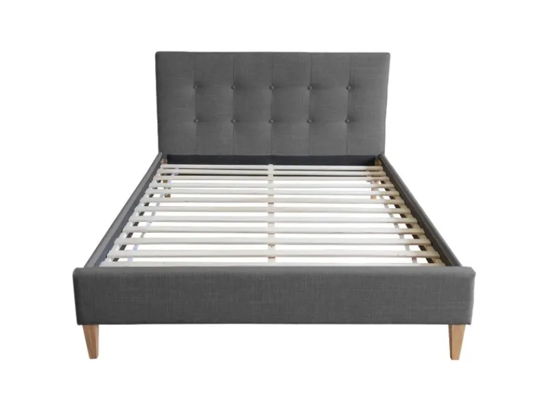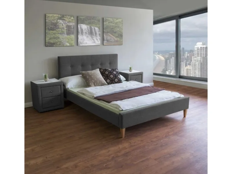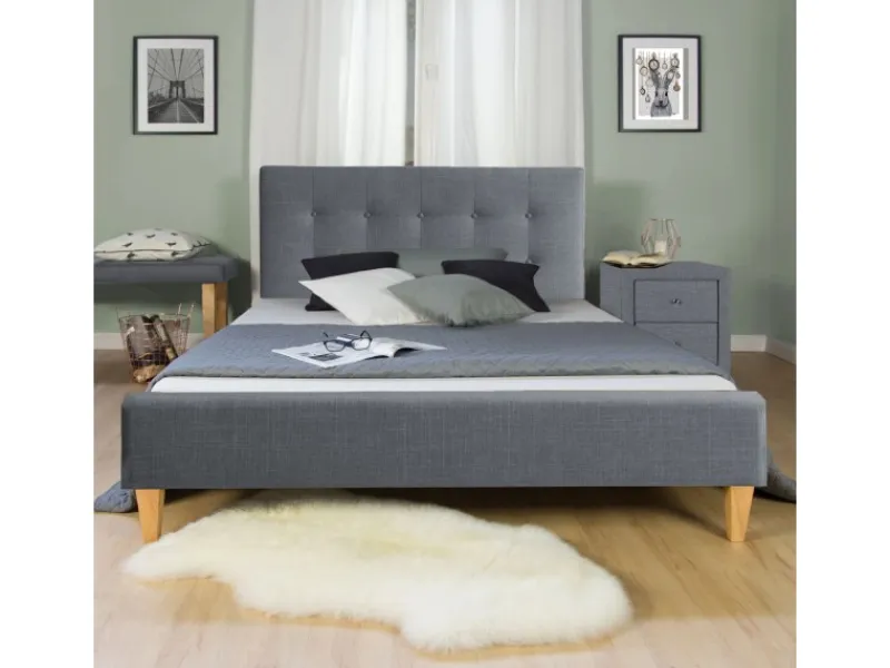 Komfortables Doppelbett 160×200 cm mit Stoffbezug in dezentem Grau und stabilen Massivholzfüßen