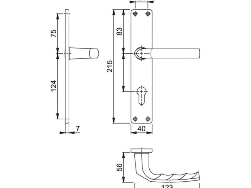 Die Hoppe Langschild-Türgriff-Garnitur Birmingham wird inklusive Profildoppelzylinder geliefert und ist passend für Türstärken von 57 – 62 mm. Die Türgriffe sind fest mit dem Schild verbunden. Sie sind drehbar gelagert und mit einem wartungsfreien Gleitlager ausgestattet. Die Befestigung erfolgt innen sichtbar mit Mehrzweckschrauben. Ein HOPPE-Profilstift verbindet die Griffe miteinander. Die Garnitur hat die Farbe Aluminium silberfarben.