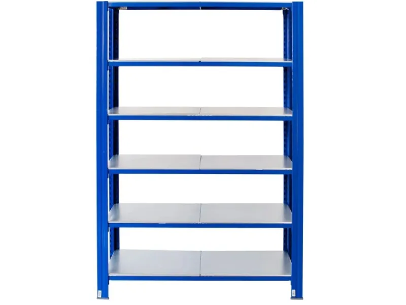 Blau pulverbeschichtet und Verzinkter Stahl: Der hochwertige Pulverbeschichtung und verzinkte Stahl Böden schützt das Regal zuverlässig vor Korrosion und Rost.