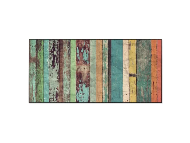 Das Motiv Bunte Bretterwand wird mit einem Schutzlaminat überzogen und ist lösungsmittelfrei.