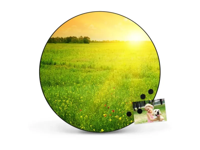Das banjado Design Vision Board bringt Ordnung in Ihr Zettelchaos. Fotos, Notizen oder Rezepte lassen Sich stilvoll mit den beigefügten Magneten auf der runden Magnettafel. ordnen.