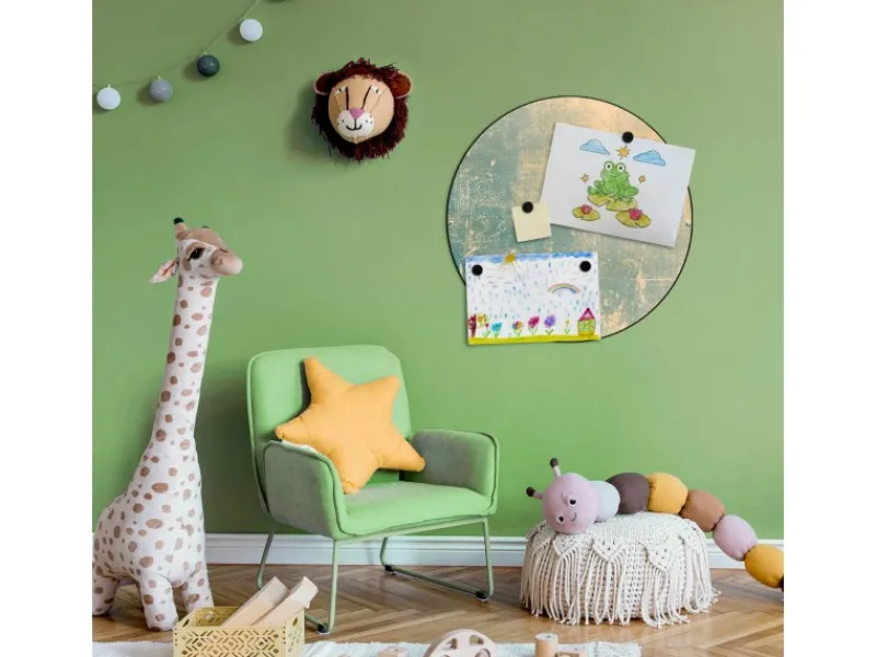 Das banjado Design Vision Board bringt Ordnung in Ihr Zettelchaos. Fotos, Notizen oder Rezepte lassen Sich stilvoll mit den beigefügten Magneten auf der runden Magnettafel. ordnen.