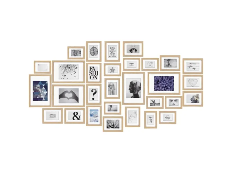 bomoe Bilderrahmen-Set für Collagen aus MDF Holz und bruchsicherem KunststoffglasVerteilen Sie die Bilderrahmen Collage in verschiedenen Zimmern oder machen Sie eine große Collage daraus. Ob quer oder hochkant, mit den mitgelieferten oder eigenen Bildern, Sie können individuell entscheiden wie Sie dieses Fotorahmen Set am besten nutzen wollen.Zudem sind die Bilderrahmen mit Standfüßen ausgestattet, sodass sie ohne Probleme auch auf ihren Tischen oder Möbeln Platz nehmen können.Die bomoe Bilderrahmen Sets bestehen aus MDF-Holz und bruchsicherem, beidseitig foliertem Kunststoffglas. Somit ist sichergestellt, dass Ihre Bilder, seien es Fotos, Kunstwerke oder selbst gemalte Bilder, langfristig vor Schmutz geschützt sind.Zu diesem Set gehören Passepartouts für alle Bilderrahmen. So können Sie auch kleinere Bilder in die Fotorahmen integrieren, während die Bilderrahmen den edlen Look behalten.