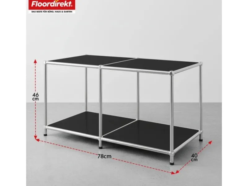 Dank der höhenverstellbaren Kunststofffüße steht das Regal auch auf unebenen Böden stabil und sicher. Es kann flexibel in verschiedenen Räumen platziert werden und dient je nach Bedarf als Sideboard, Beistelltisch oder kleiner Couchtisch. Durch die offene Bauweise bleibt alles schnell griffbereit.