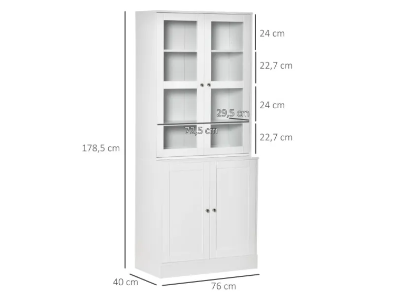 Hot HOMCOM Bücherschrank 178,5 cm mit Glastür 6 Fächern Küchenschrank Weiß