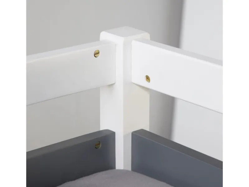 Farbe: Bettgestell weiß lackiert mit Akzenten in Grau wie einzelne Regale oder Umrandung