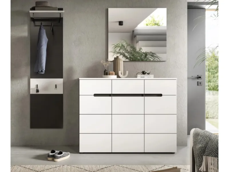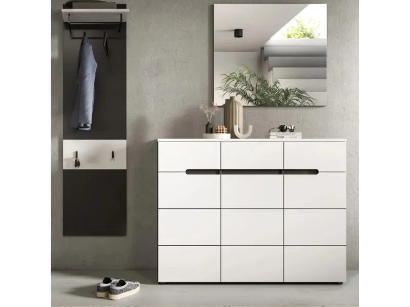 Set mit Schuhkommode, Garderobenpaneel und Spiegel für Flur und Eingangsbereich