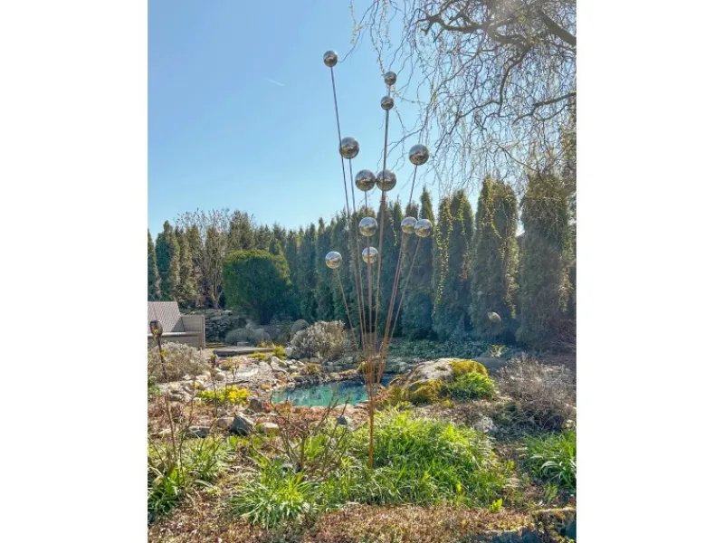 Gartenstecker mit silbernen Kugeln als eleganter Blickfang für Beete, Rasen und Vorgarten