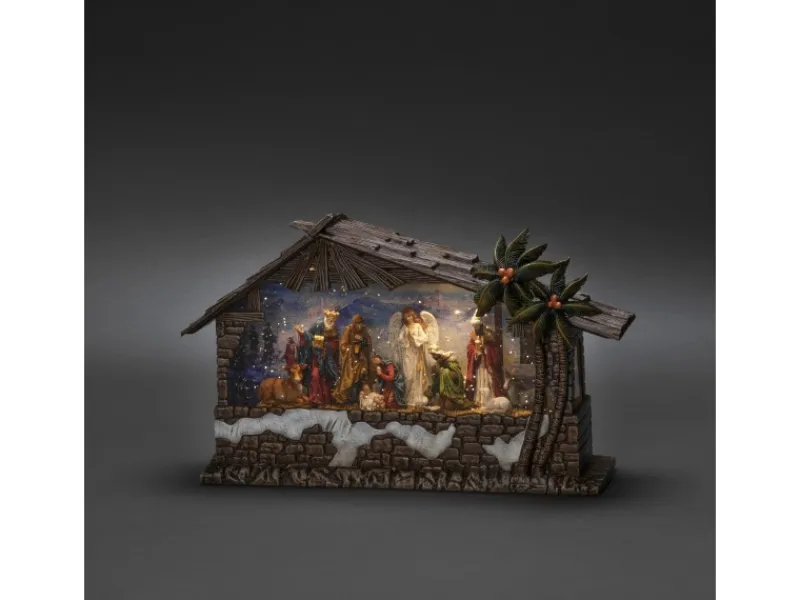 Let it Snow! Diese hochwertige, wassergefüllte Schneelaterne in Form einer Krippe verzaubert mit nostalgischem Schneeflockentanz. Nahezu schwerelos wirbelt die weißglitzernde Pracht um die romantische Weihnachtsszenerie und reflektiert das warmweiße Licht der Diode. Der Anblick der Weihnachtsfiguren macht das Herz weit und lässt uns Weihnachten wieder mit Kinderaugen sehen. Ein sehr hochwertiges und geschmackvoll gestaltetes Nostalgieobjekt, das einen ganz besonderen Platz in Ihrem Interieur verdient. Durch die Stromversorgung mit 3 C-Batterien müssen Sie bei der Platzwahl keine Kompromisse eingehen. Auch den 5h-Timer werden Sie schnell zu schätzen wissen, er sorgt dafür, dass das Licht abends automatisch nach 5 Stunden erlischt, um es am nächsten Abend wieder pünktlich für Sie aufleuchten zu lassen. Ein hochwertiges und langlebiges Markenprodukt, das Ihnen und Ihren Lieben viele Jahre Freude schenken wird. Die Firma Konstsmide ist seit 1942 auf die Herstellung hochwertiger Lichtdekorationen für den Innen- und Außenbereich spezialisiert und seit 1999 maßgeblicher Impulsgeber für innovative, langlebige und sichere LED-Lösungen.