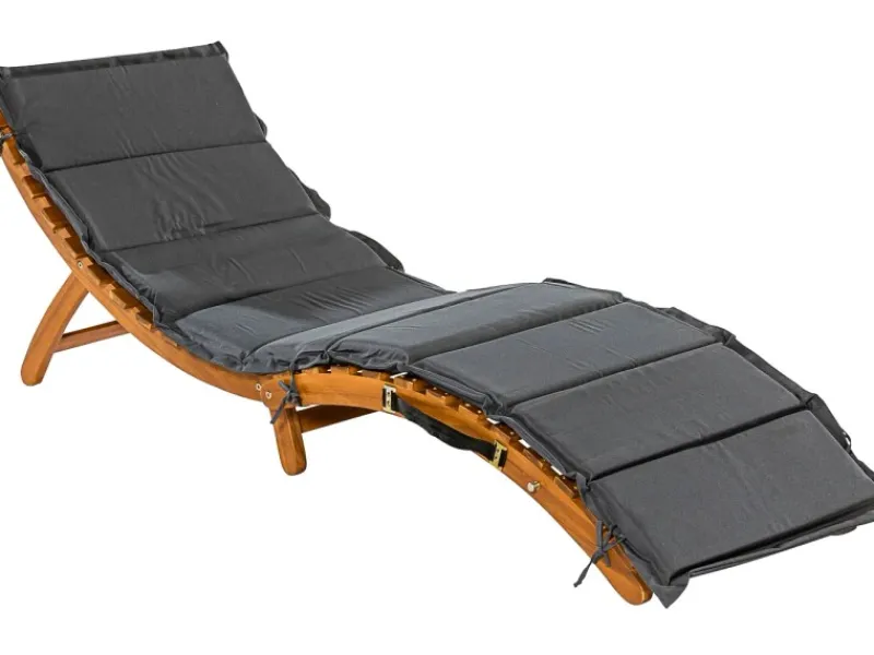Die Merxx Sonnenliege Honopu überzeugt durch ihre elegant geschwungene Optik. Der Sitzkomfort der Formliege wird durch das Wendekissen, das mehrfach abgesteppt ist, erhöht. Zum einfachen Transport lässt sich die Liege zusammenklappen und arretieren. Der Griff erleichtert Ihnen den Transport. Die Liege ist aus geöltem Akazienholz gefertigt. Für eine bessere Haltbarkeit sind die Schrauben galvanisiert.